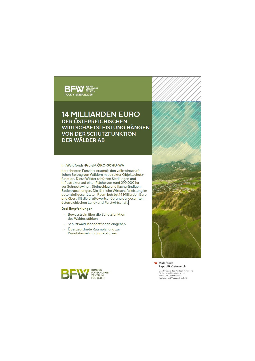 Freudenschuß A.: BFW Policy Brief Nr. 2 - 14 Milliarden Euro der Österreichischen Wirtschaftsleistung hängen von der Schutzfunktion der Wälder ab. 2025 4 S.